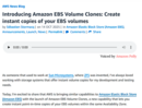 AWS、Amazon EBSボリュームを数秒でコピーできる「Amazon EBS Volume Clones」リリース